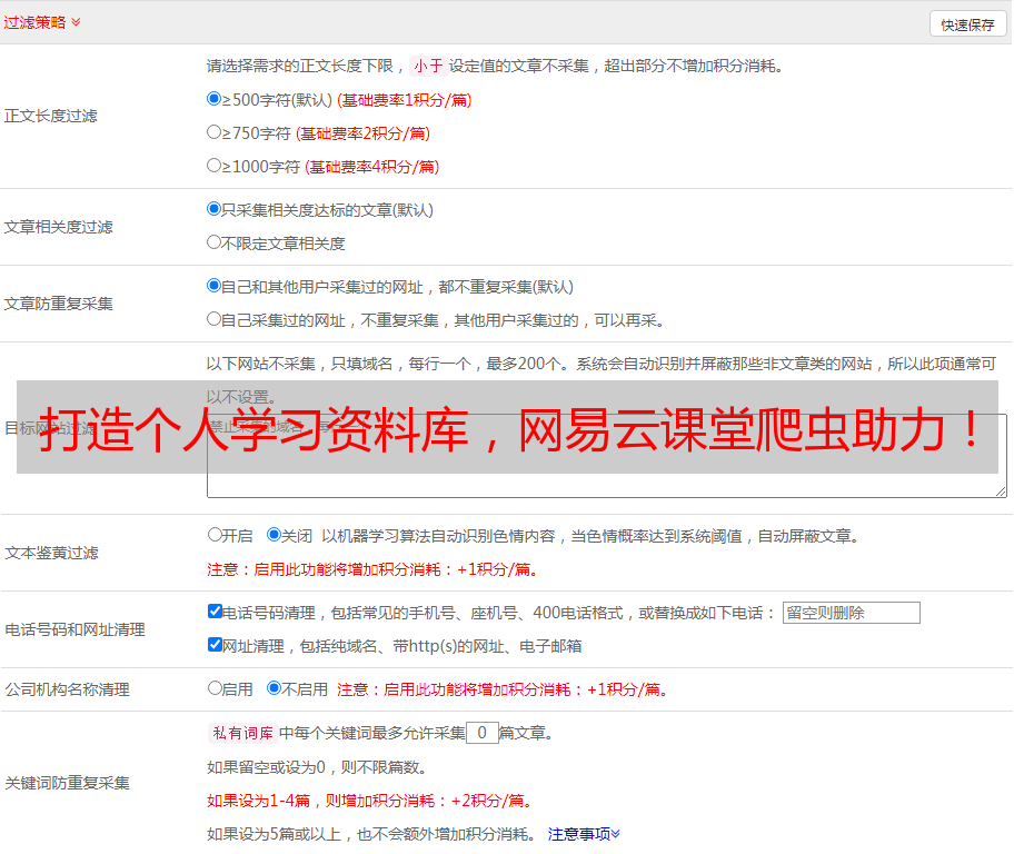 优采云 发布时间: 2023-03-28 07:11在这个信息爆炸的时代,想要获取最新、最全面的知识,不得不提到爬虫技术。网易云课堂作为国内知名的在线教育平台,其丰富的课程资源吸引了越来越多的学习者。但是,要想把这些课程资料整理出一份自己的学习资料库并非易事。因此,本文将从以下十个方面详细介绍如何利用爬虫技术来打造一个属于你自己的学习资料库。