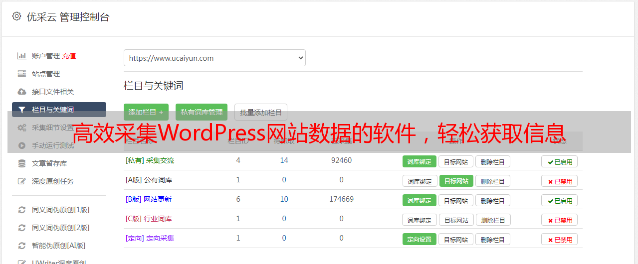 如果你正在寻找一款强大而易于使用的数据采集工具,那么“WordPress网站数据采集软件”绝对是一个值得考虑的选择。此外,如果你想要进一步提高你的WordPress网站的效率和可见性,那么我们推荐使用优采云和SEO优化服务。