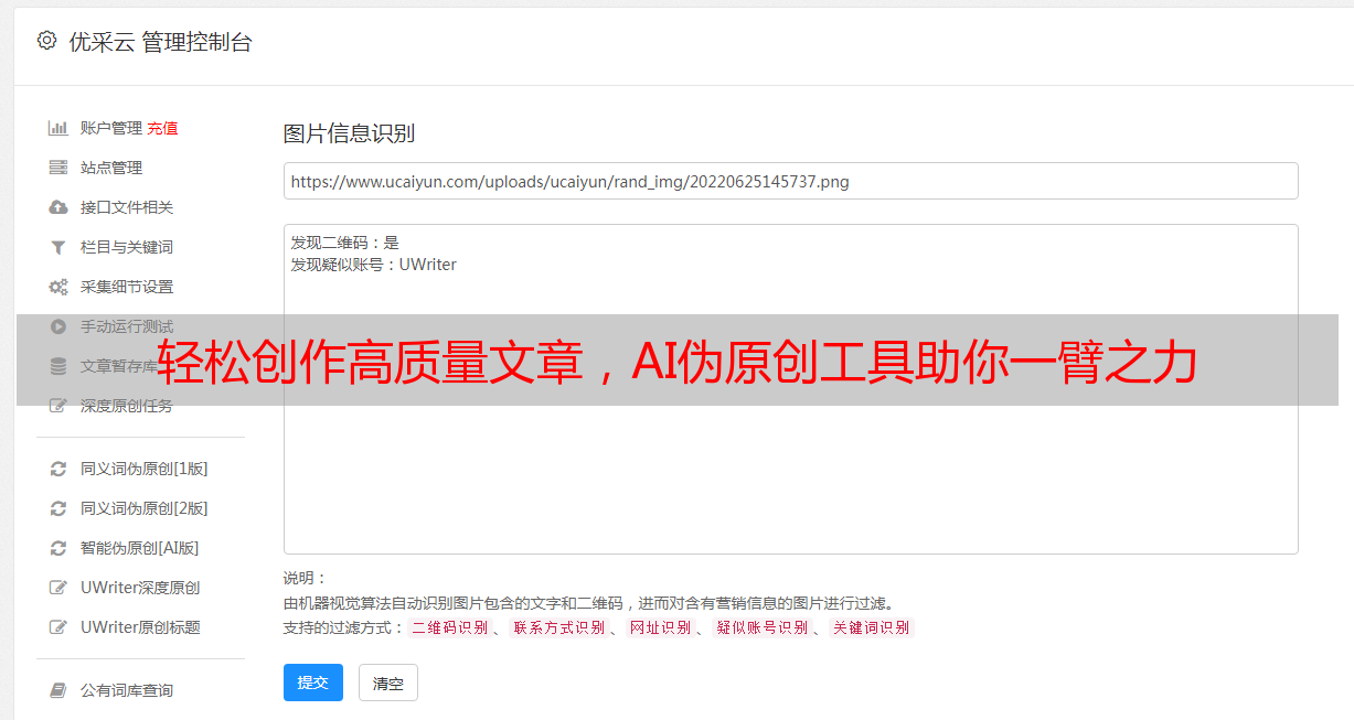 优采云 发布时间: 2023-03-28 14:16伴随着互联网时代的到来,自媒体逐渐成为了人们获取信息、传播思想的重要渠道。在这个新时代,如果你想在自媒体领域站稳脚跟,就必须拥有一款好用的写作工具。今天,我将向大家介绍一款名叫“AI伪原创文章工具”的神奇工具,帮助你快速撰写高质量的文章,让你在自媒体领域立于不败之地!