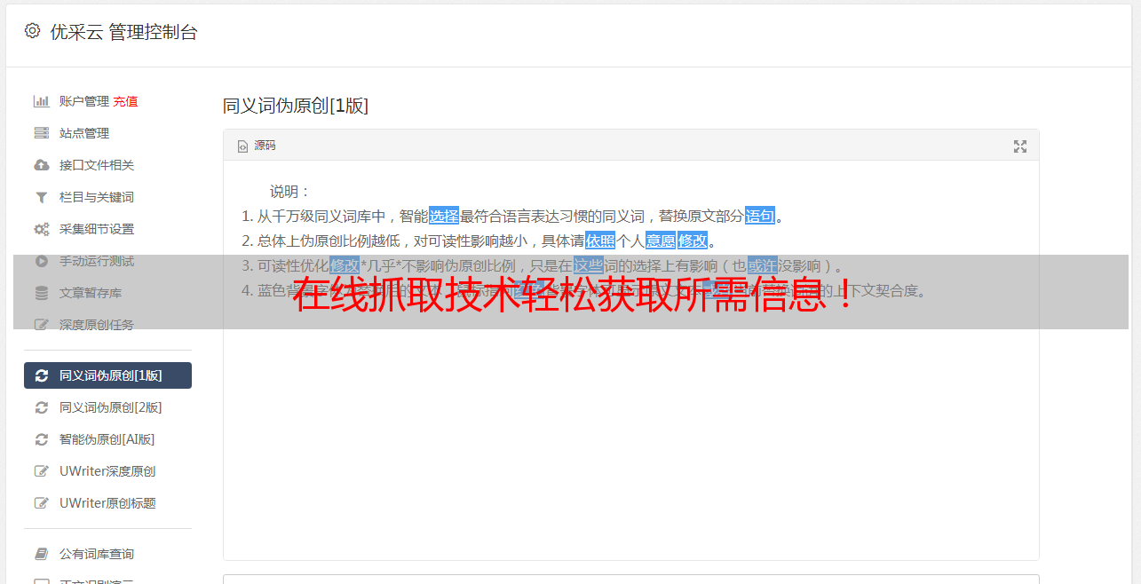 通过在线抓取技术,我们可以快速获取所需信息,提高工作效率,实现更多可能。但在使用该技术时需要注意法律法规和伦理道德等方面的问题。优采云(www.ucaiyun.com)是一家专业的数据采集与处理平台,在线抓取方面有着丰富的经验和技术积累。同时也提供SEO优化服务,帮助企业更好地利用在线抓取技术实现营销目标。