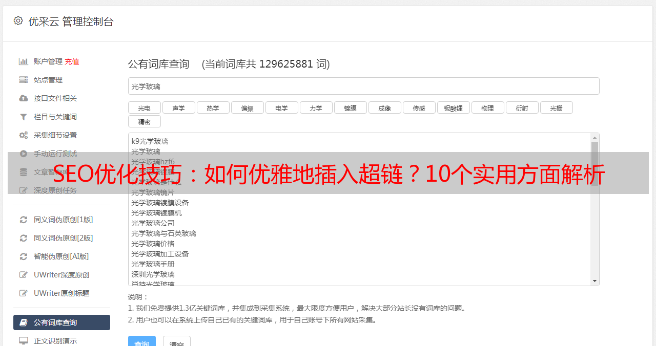优采云 发布时间: 2023-03-28 17:16SEO优化是网站排名的关键,而超链则是提高网站权重和流量的重要手段。但是,如果过度使用或不当使用超链,可能会适得其反,影响网站的排名和用户体验。那么,在写作过程中如何优雅地插入超链呢?本文将从以下10个方面进行分析讨论。