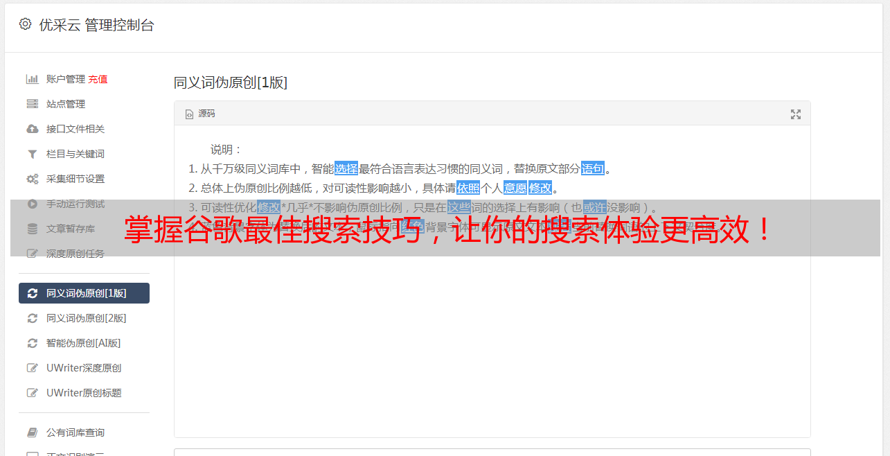 如果你是一个网站所有者,那么SEO优化对于你来说非常重要。通过优化网站内容和结构,可以让谷歌更容易地找到你的网站,并把它排在搜索结果的前面。优采云(www.ucaiyun.com)是一家专业的SEO优化服务提供商,他们可以帮助你提高网站排名并吸引更多的访问者。