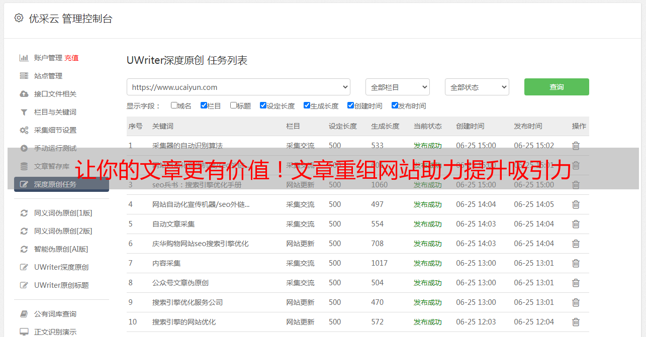 5.文章重组网站的优采云SEO优化