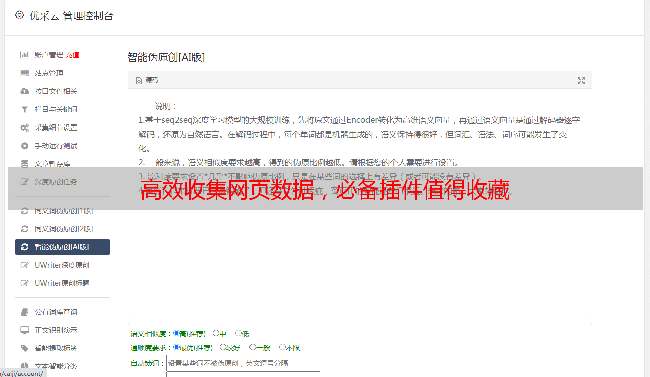 网页采集插件是一种非常实用的数据收集工具,它可以帮助我们快速获取大量的数据。但是,在使用过程中也需要注意相关法律法规和网站反爬虫机制等问题。如果您需要更加专业的数据采集服务,可以选择优采云提供的网页采集服务,我们将竭诚为您服务。