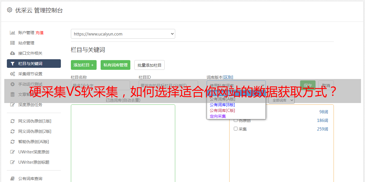 优采云 发布时间: 2023-03-31 04:09硬采集和软采集是两种常见的网络数据采集方式。对于那些想要构建自己的数据仓库或者需要从互联网上获取大量数据的人来说,这两种方式都是可行的选择。但是,哪种方法更适合你的网站呢?本文将对硬采集和软采集进行详细分析,并提供一些有用的建议。