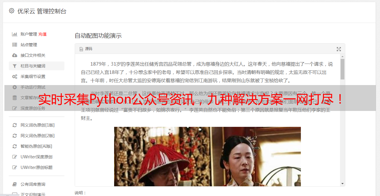 如果你觉得使用Python公众号资讯实时采集还是比较麻烦,那么可以尝试使用优采云。优采云是一款专业的信息采集工具,支持自定义规则、定时抓取等功能,帮助你轻松获取所需信息。