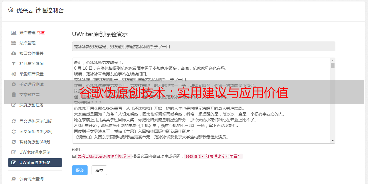 -过度使用谷歌伪原创可能会导致被搜索引擎惩罚;