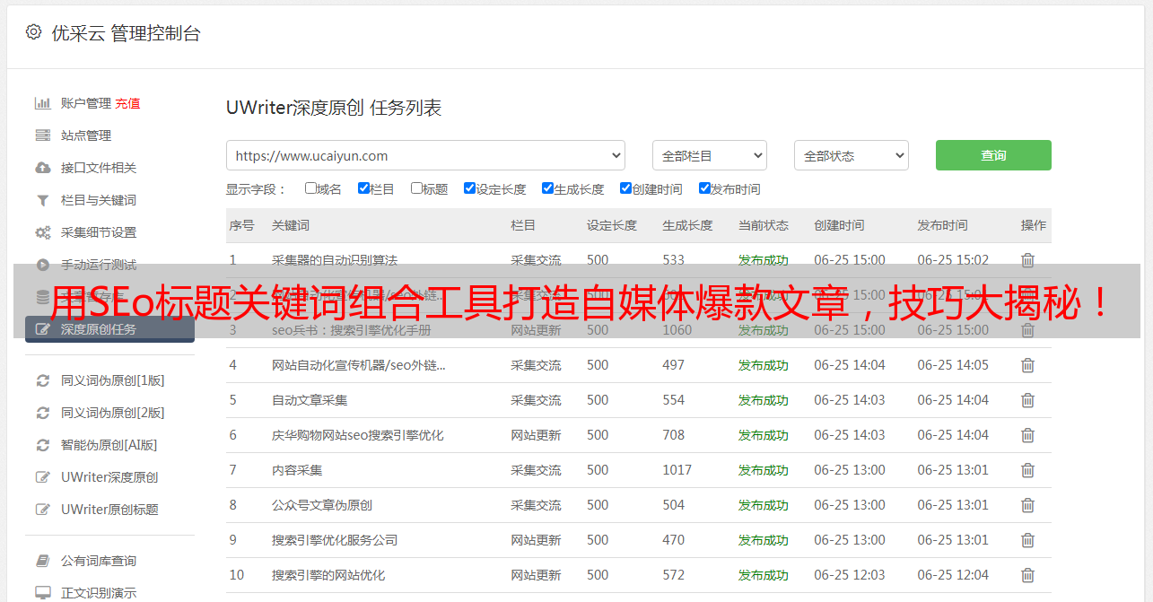 优采云 发布时间: 2023-03-31 14:18随着自媒体时代的到来,越来越多的人开始涉足自媒体领域。然而,如何写出一篇高质量、有吸引力的文章成为了摆在很多人面前的难题。这时候,SEo关键词组合工具就能够派上用场了。本文将从10个方面详细介绍如何利用SEo关键词组合工具打造自媒体爆款文章。