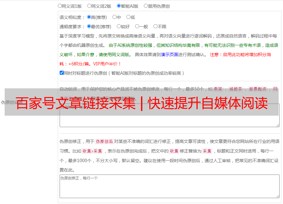 1.采集文章链接需要注意版权问题,不要侵犯其他作者的合法权益。