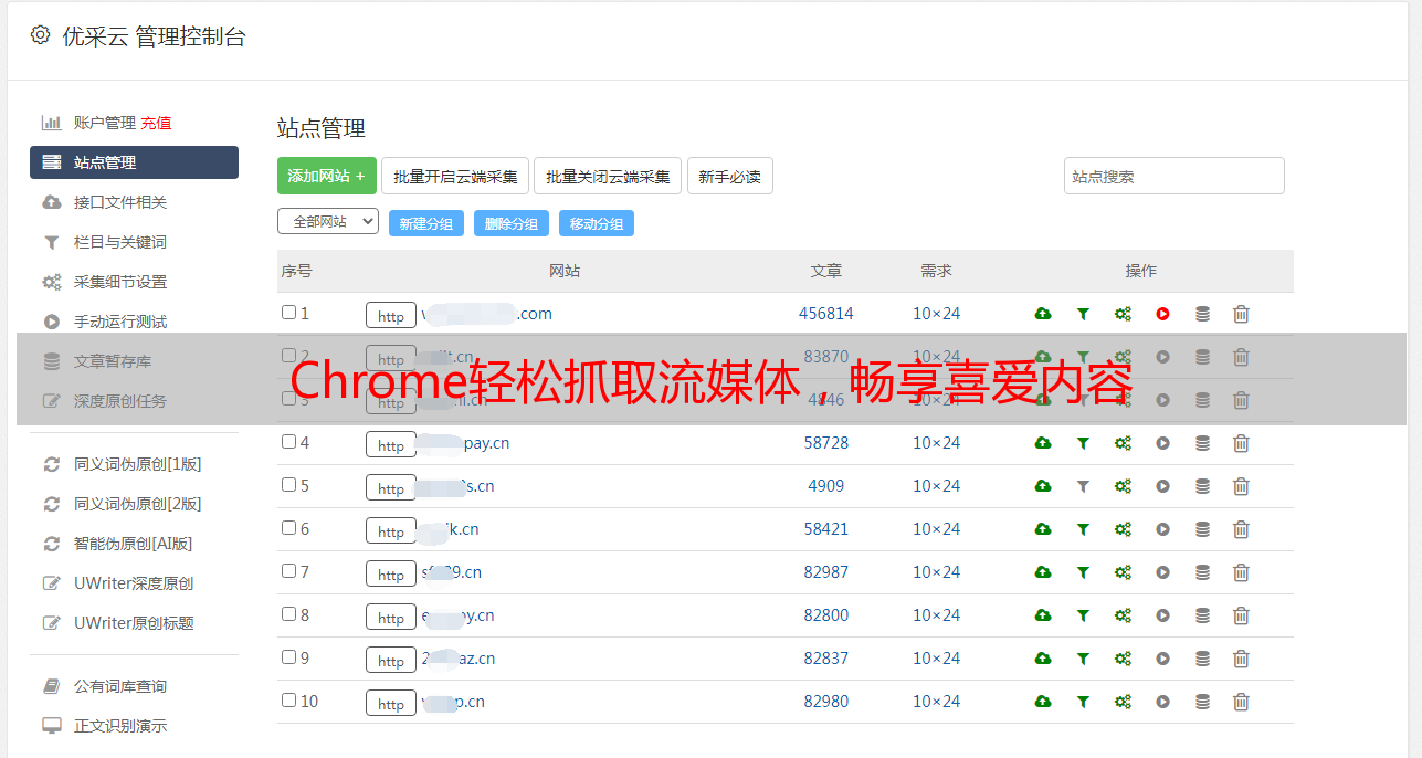 通过使用chrome 流媒体抓取,你可以轻松地下载并保存你喜欢的流媒体内容。此外,如果你需要更加高效地管理和处理你的流媒体库,那么你可以考虑使用优采云。最后,请注意SEO优化,以提高你的自媒体影响力。