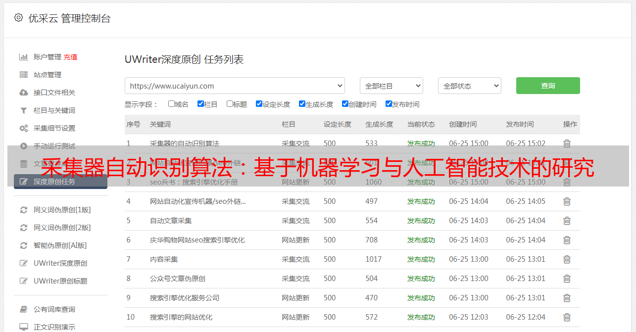 优采云作为一家专业的数据采集平台,采用了先进的自动识别算法,可以快速、准确地抓取各类网站上的数据,并进行实时处理和分析。同时,我们还提供SEO优化等增值服务,帮助企业更好地利用数据资源,提升竞争力。欢迎访问我们的官网:www.ucaiyun.com。