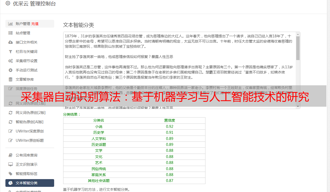 采集器的自动识别算法是一种基于机器学习和人工智能技术的数据采集技术。它可以通过分析网页结构、内容特征等信息,自动判断需要采集的数据,并快速地将其抓取下来。相比传统的手动配置,自动识别算法具有更高的准确性和效率。