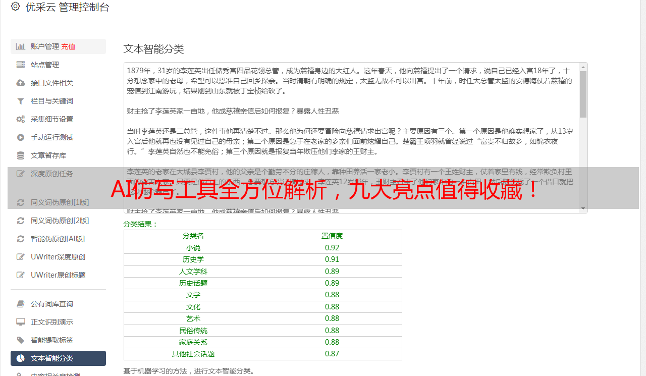 优采云 发布时间: 2023-04-01 00:12在当今信息爆炸的时代,为了吸引读者的眼球,自媒体人需要不断地创新和突破。而AI仿写工具就是一种非常好的工具,它能够帮助自媒体人快速地生成优质文章,提高写作效率。接下来,我们将从9个方面对AI仿写工具进行详细分析。