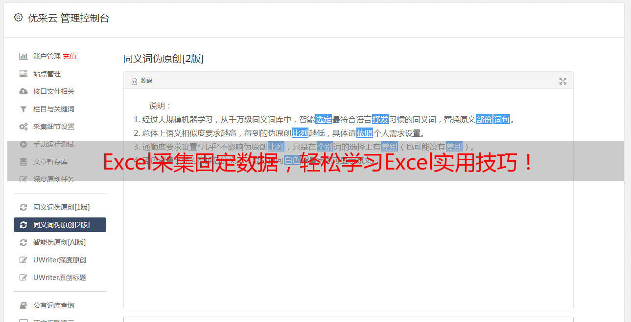 通过Excel采集固定的方法,我们可以轻松打造高效数据采集利器。无论是进行竞品分析、市场调研还是其他类型的数据采集,Excel采集固定都可以为我们带来极大的便利和效率提升。如果您想进一步了解如何将Excel应用于SEO优化等领域,请访问优采云官网(www.ucaiyun.com)了解更多信息。