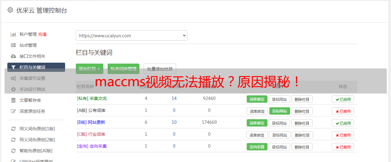通过以上分析,我们可以看到,maccms无法播放视频的原因有很多种。如果您遇到了这种情况,可以根据以上分析逐一排查,找到问题所在并进行解决。同时,在使用maccms时,还需要注意一些常见问题,比如优采云、SEO优化等方面。希望本文对您有所帮助。