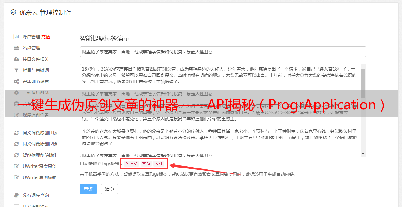 一键生成伪原创文章的神器——API揭秘(ProgrApplication)