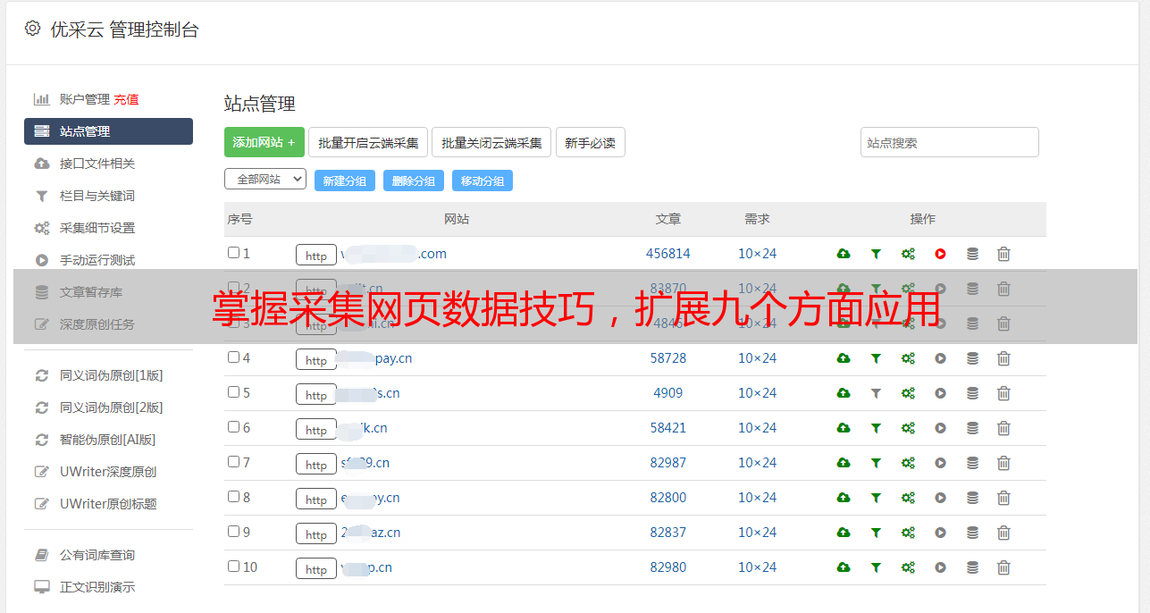 优采云是一款功能强大的采集工具,可以帮助用户快速、准确地获取所需数据。同时,优采云还提供了多种数据处理和管理功能,让用户更轻松地管理自己的数据。