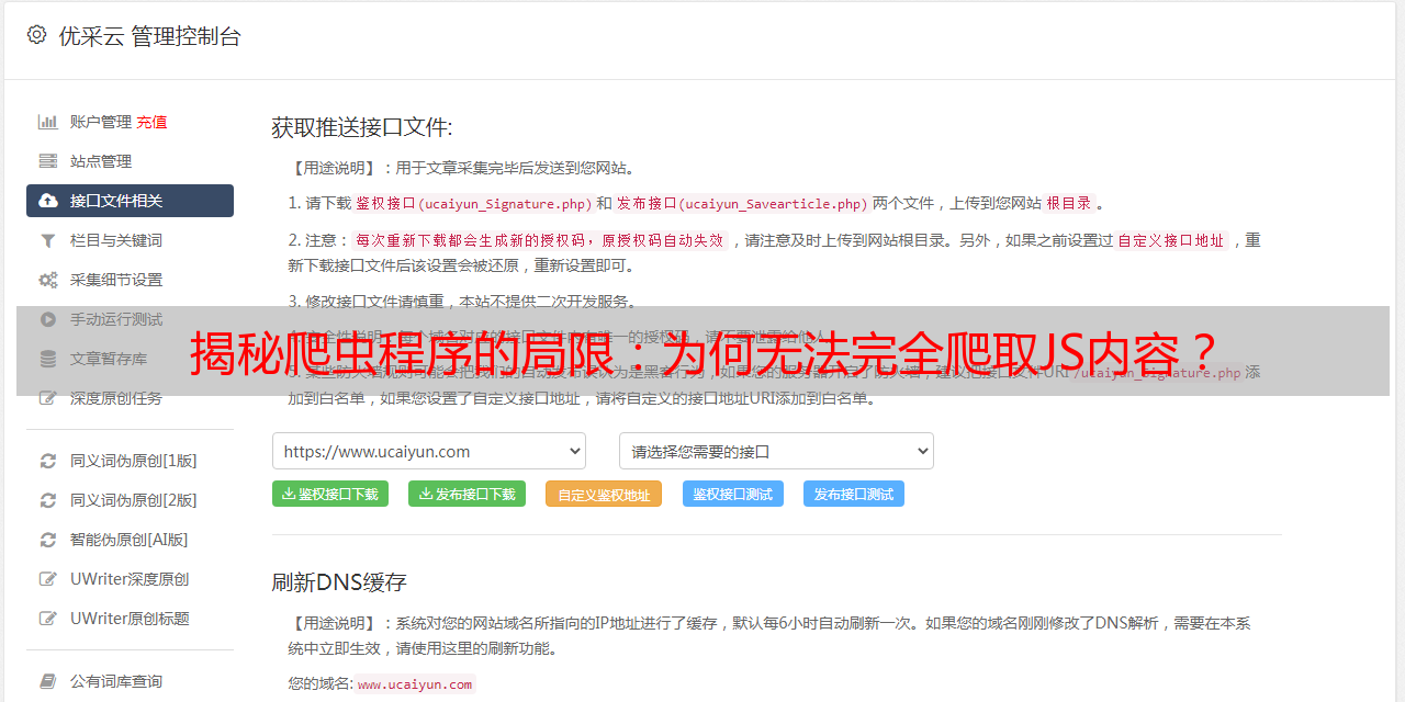 优采云 发布时间: 2023-04-01 17:16众所周知,爬虫程序在网络数据采集中扮演着重要的角色。但是,随着前端技术的不断更新,越来越多的网站使用JavaScript来渲染页面,而传统的爬虫程序却无法获取这些通过JavaScript生成的内容。那么,为什么爬虫程序爬不全js呢?本文将从多个方面进行分析。