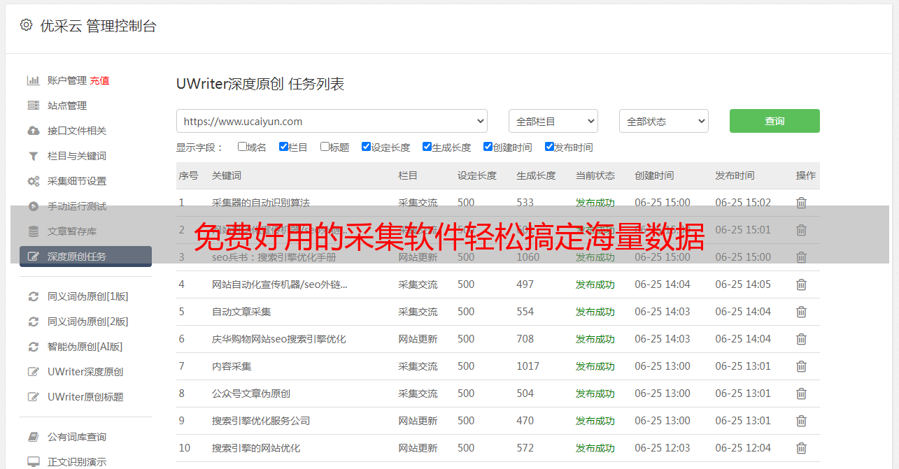 作为一款免费好用的采集软件,优采云不仅功能强大,而且操作简单、界面友好。无论是对于企业用户还是个人用户来说,都是一个非常实用的数据采集工具。如果你也需要采集大量数据并进行后续处理,那么优采云将是你最好的选择。