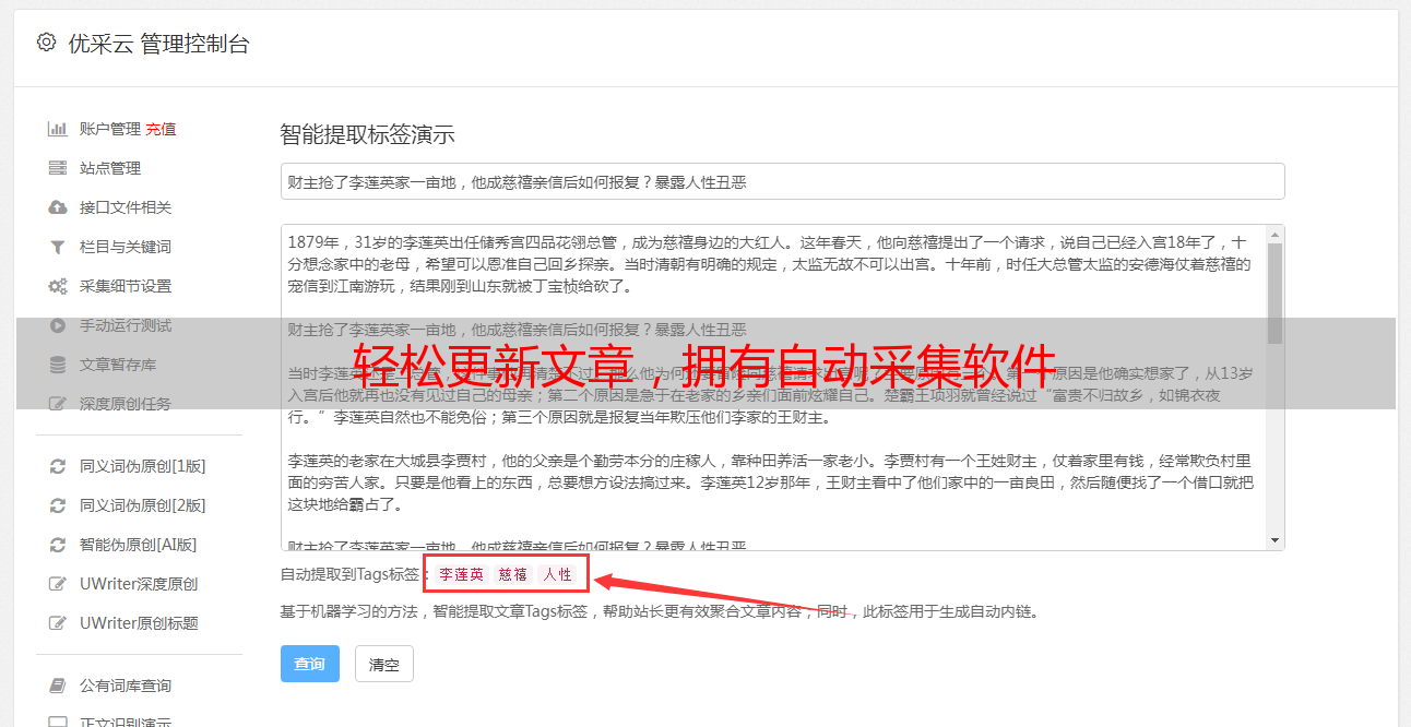 轻松更新文章,拥有自动采集软件