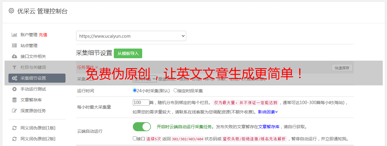 (1)打开免费伪原创英文文章*敏*感*词*网站:www.ucaiyun.com。
