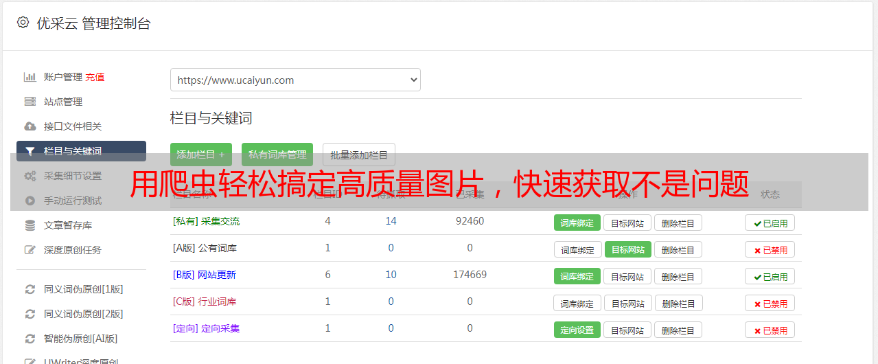 在这里,我们推荐使用优采云(www.ucaiyun.com)作为图片存储服务。优采云是一家专业的云存储服务提供商,支持多种数据类型的存储和管理,并提供了强大的API接口和SDK工具包,方便开发者进行二次开发和集成。