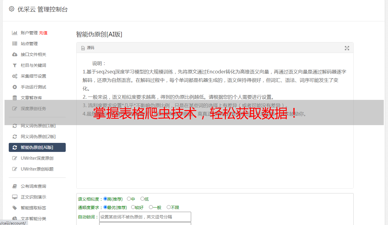 本文介绍了表格爬虫的相关知识,并提供了一些实用技巧。如果你想轻松获取所需数据,那么表格爬虫绝对是一个非常有用的工具。优采云提供高效的数据采集服务,可以帮助你轻松获取所需数据。如果你需要更多帮助,请访问我们的网站:www.ucaiyun.com。