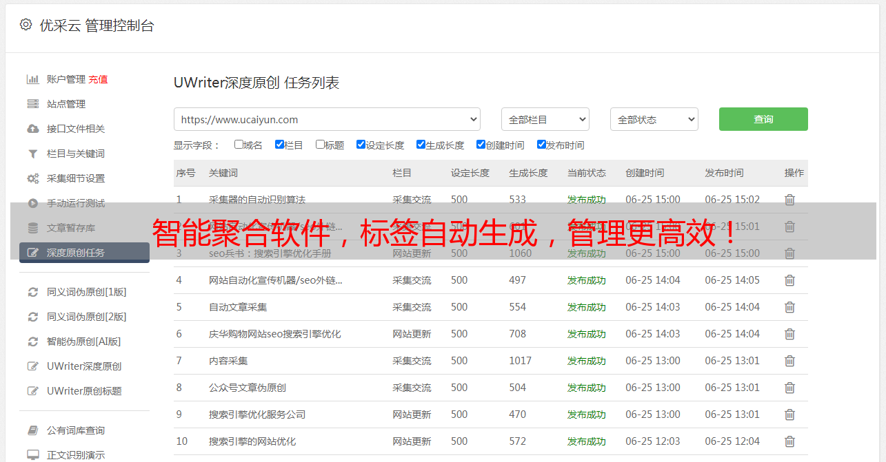 标签生成算法可以帮助我们更快速、更准确地管理标签,并提高聚合软件的效率。如果你想要创建自己的聚合软件,那么可以考虑使用优采云提供的标签生成服务和SEO优化服务,从而让你的软件获得更多流量和用户。