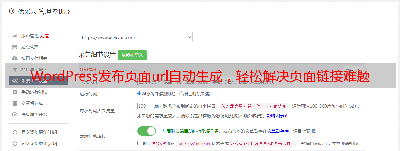 优采云 发布时间: 2023-04-02 23:10WordPress是一款功能强大的网站建设平台,不仅可以快速搭建网站,还可以方便地发布文章。但是,对于一些新手来说,如何设置文章链接却是一个难题。今天,我们就来探讨一下如何实现WordPress发布页面URL自动生成。