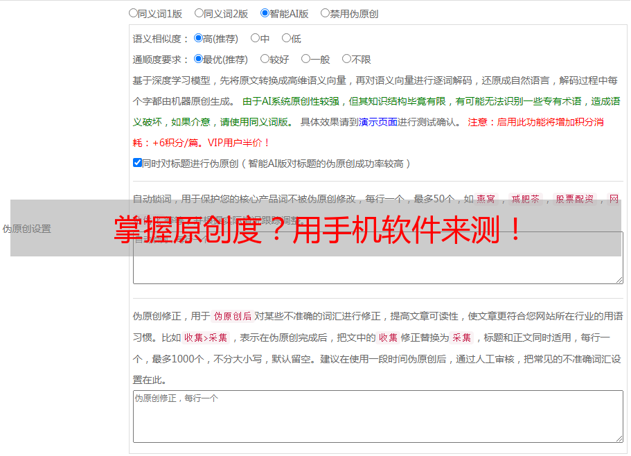③智能化:测原创度的手机软件不仅能够检测文章中的抄袭,还能给出相应的修改建议,让我们更好地提高文章质量。