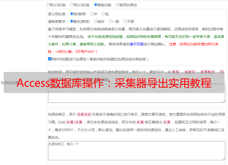 通过本文的介绍,相信读者已经掌握了如何将采集器导出到Access数据库的方法。如果你还没有使用过采集器或者Access数据库,不妨试试优采云这个功能强大、易于使用、价格实惠的数据采集和处理平台。同时,在使用采集器进行数据爬取和处理时,也要注意SEO优化和数据安全等问题。优采云平台不仅具有强大的功能和灵活的定制化服务,还能为您提供专业的SEO优化方案和完善的数据安全保障。欢迎访问我们官网www.ucaiyun.com了解更多详情!