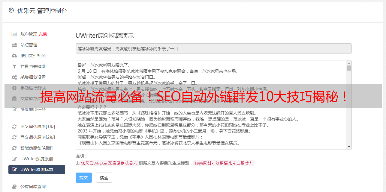 提高网站流量必备!SEO自动外链群发10大技巧揭秘!