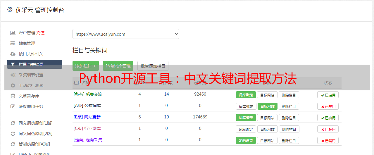优采云 发布时间: 2023-04-03 12:11Python作为一种高效、易用的编程语言,已经成为了数据分析和自然语言处理领域的热门选择。其中,中文关键词提取是自然语言处理中重要的一环。本文将介绍Python中开源的中文关键词提取方法,并探讨如何在实际应用中提高文本处理效率。