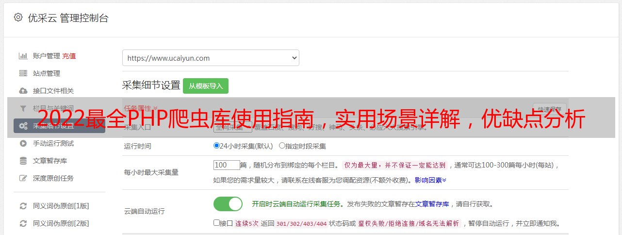 优采云 发布时间: 2023-04-03 17:15PHP爬虫库是一种高效、稳定的数据获取工具,它可以帮助你快速抓取互联网上的各种数据。今天,我们就来全面解析PHP爬虫库,包括使用方法、优缺点、应用场景等方面。
