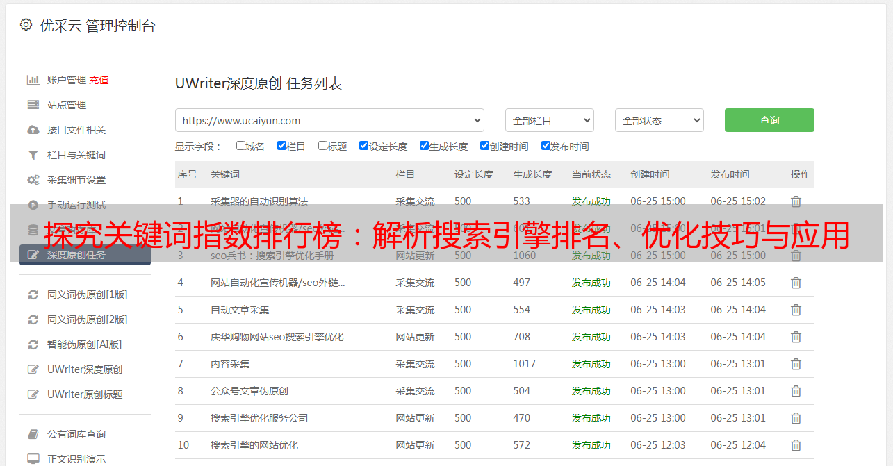 优采云 发布时间: 2023-04-03 21:12众所周知,搜索引擎是现代互联网用户获取信息的主要渠道之一。而搜索引擎将页面按照关键词指数排名,将有利于用户搜索到相关内容的页面排在前面。因此,对于自媒体来说,关键词排名是至关重要的。
