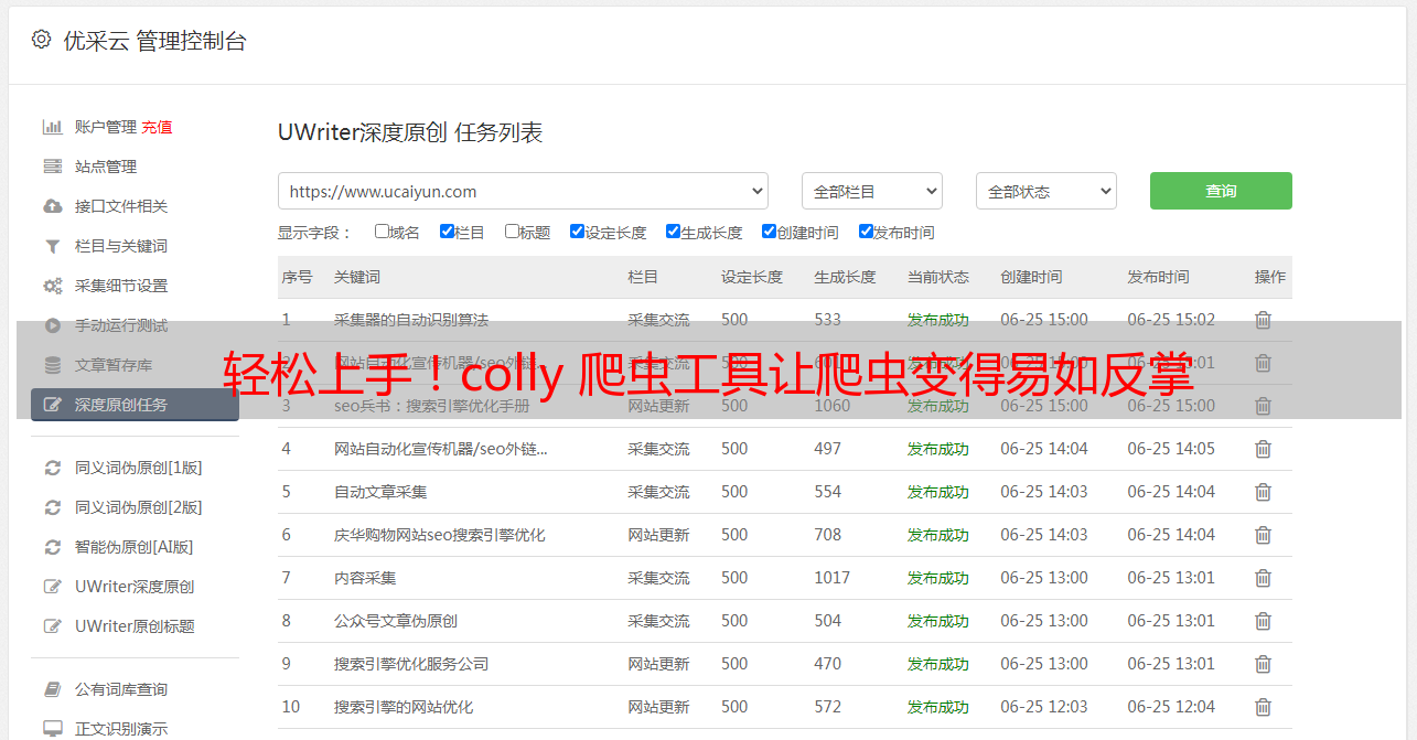 优采云 发布时间: 2023-04-03 21:12近年来,随着互联网的飞速发展,网页上的信息数量呈几何级数增长。然而,如何在这些海量信息中高效地获取所需内容却成为了一个问题。因此,本文将介绍一个最简单、易于使用的爬虫工具——colly 爬虫,帮助您快速获取所需信息。
