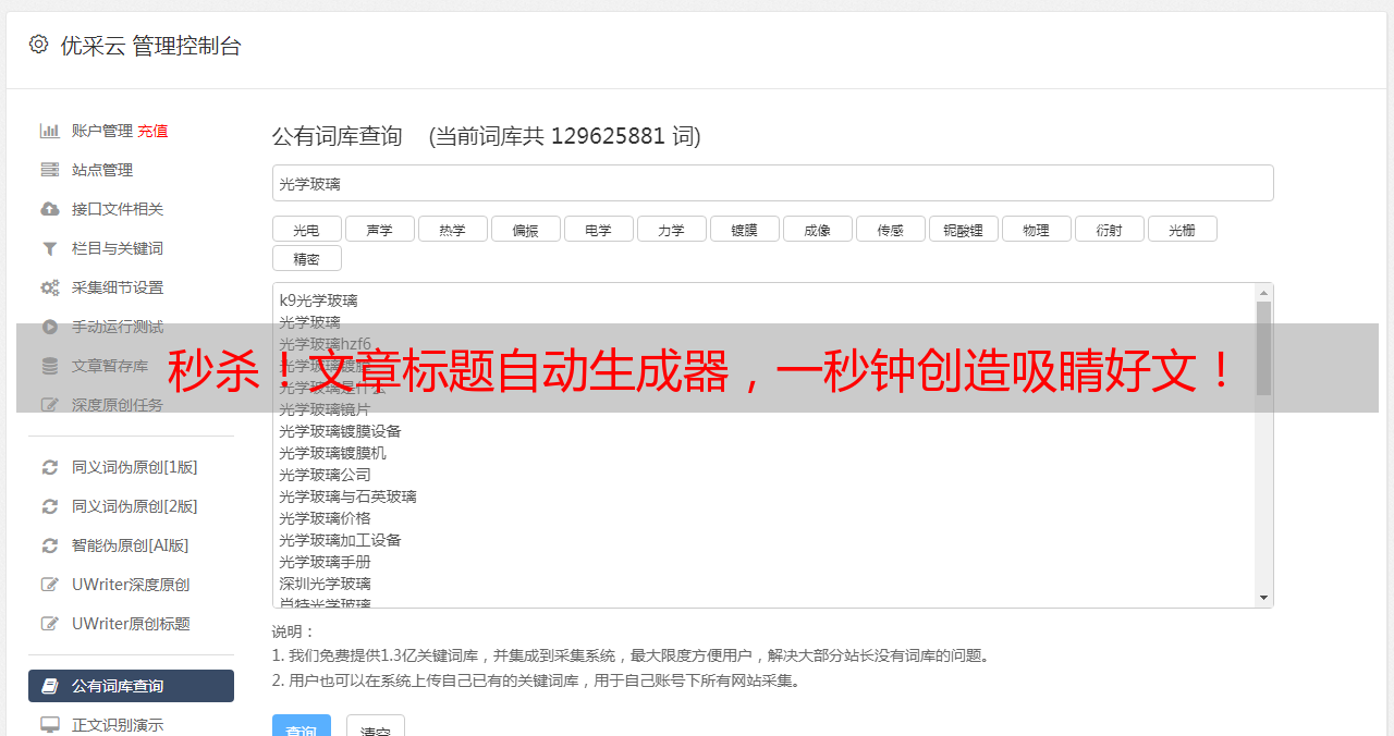 总之,文章标题自动*敏*感*词*是一个非常实用的工具,可以为我们省去很多时间和精力。但是,在使用时也需要注意以上几点,才能让它发挥最大的作用。如果你想了解更多关于SEO优化的知识,可以关注优采云(www.ucaiyun.com),这里有更多深入浅出的SEO教程等你来学习!