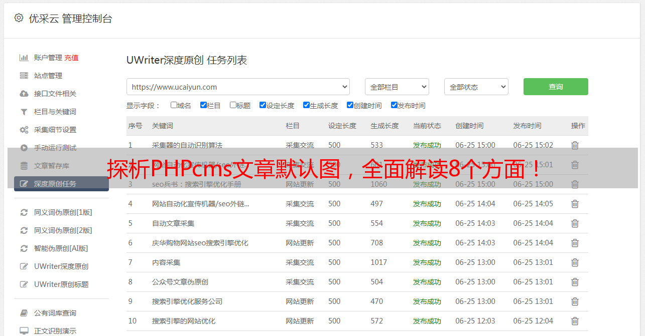 优采云是一款专业的SEO优化工具,可以帮助自媒体人优化文章标题、关键词、描述等内容,提高文章在搜索引擎中的排名。同时,优采云还支持自定义默认图功能,可以让你更好地控制文章封面图片,提高文章点击率和用户体验。