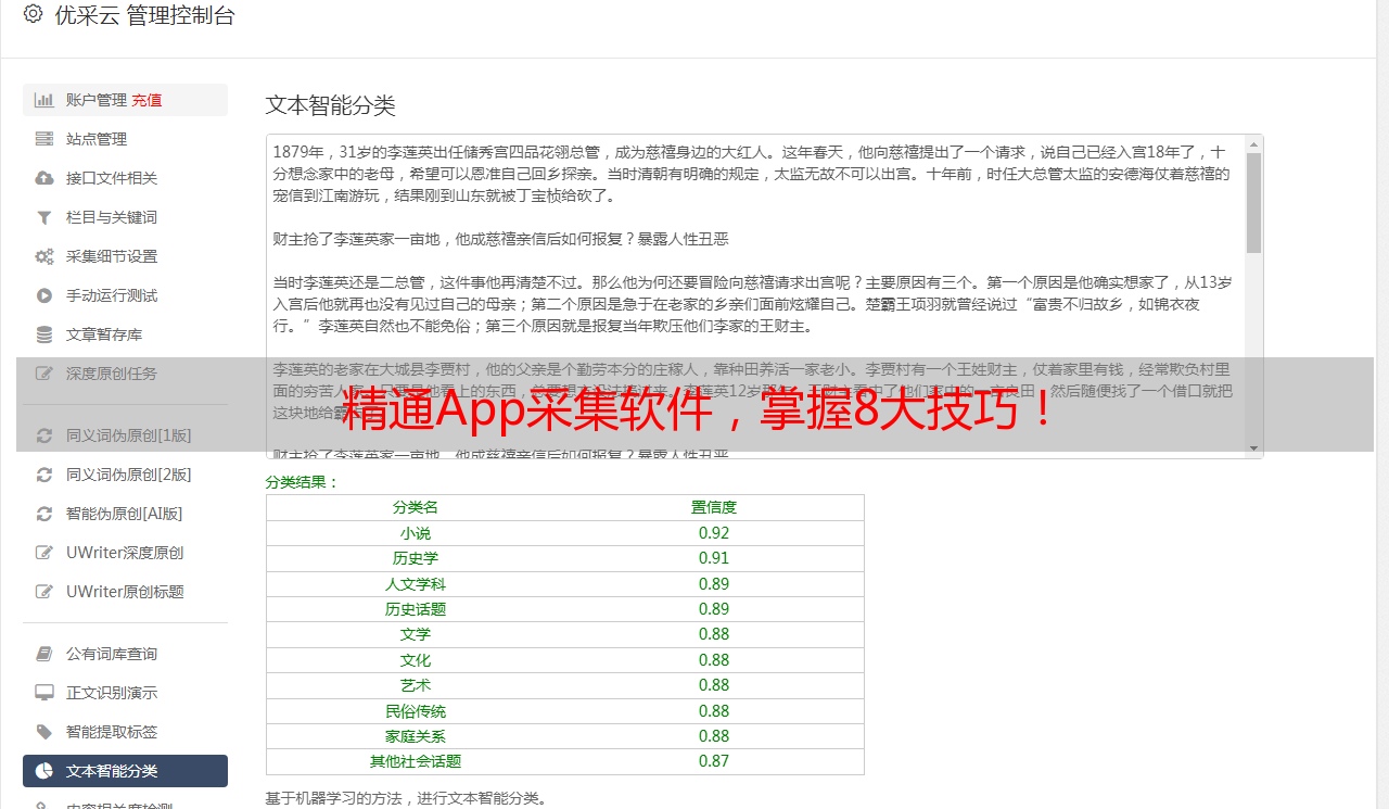 总结:通过以上八个方面的介绍,相信大家已经掌握了App采集软件的用法。使用App采集软件可以让数据采集更加高效,同时也需要注意一些注意事项。如果你需要更多的数据采集技巧和SEO优化知识,可以访问优采云官网www.ucaiyun.com。