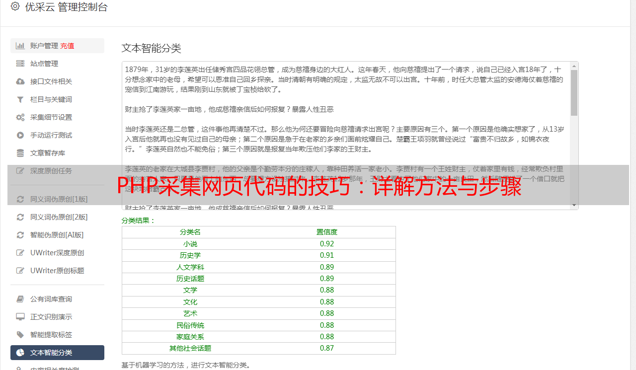 优采云 发布时间: 2023-04-04 06:09在如今信息爆炸的时代,获取并处理海量数据已经成为了一种趋势。而网络爬虫技术则是实现这种趋势的重要手段之一。PHP作为一门流行的Web编程语言,自然也有其方便快捷地获取网络数据的方法。本文将详细讲解PHP如何采集网页代码。