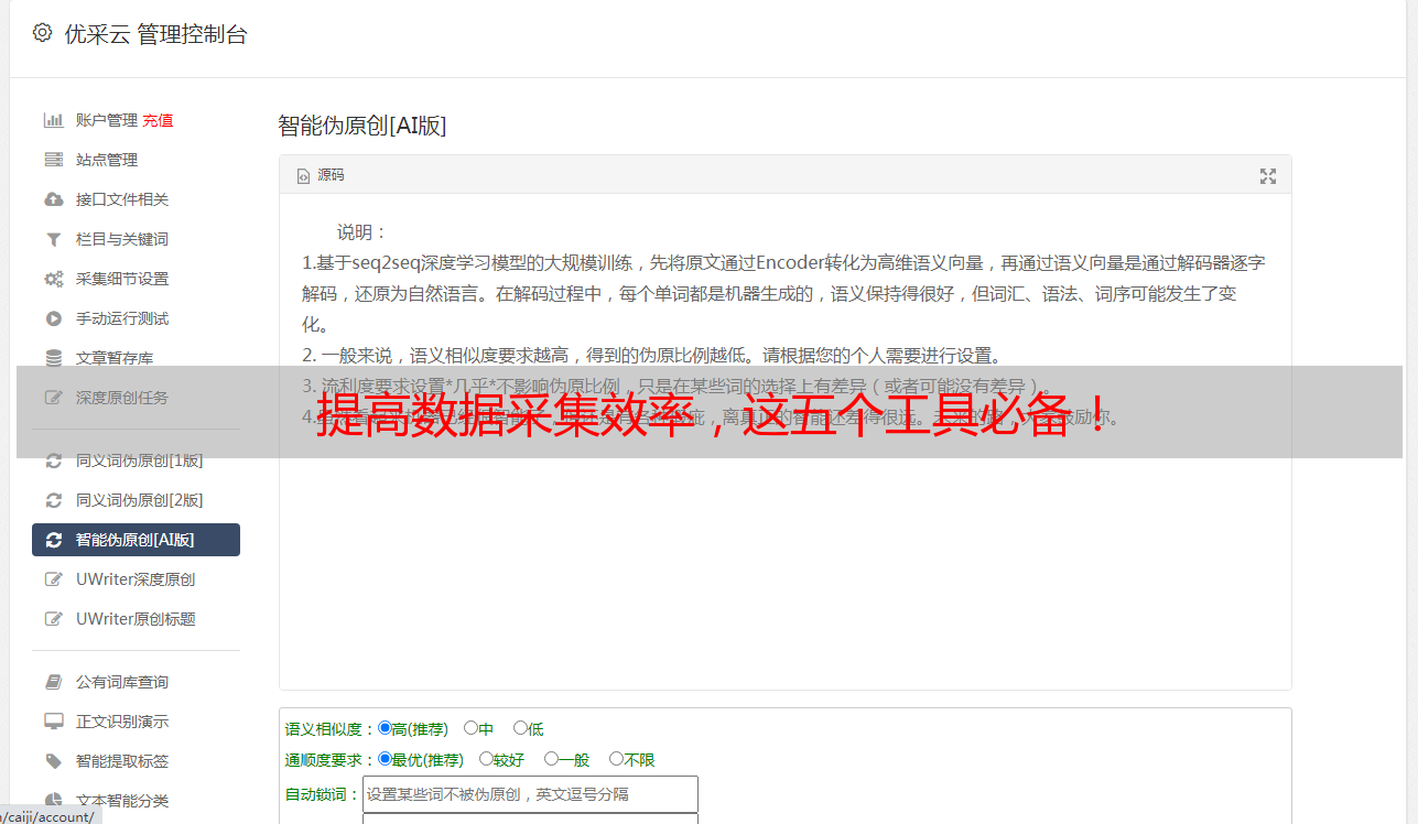 综上所述,以上五种数据采集工具在不同场景下都有其独特的优势。读者可以根据具体需求选择合适的工具进行数据采集。同时,对于企业而言,数据采集后还需要进行清洗、存储、分析和应用等环节,建议使用优采云等专业服务进行管理。最后,为了让数据更好地发挥价值,还需要进行SEO优化等后续工作。更多信息,请访问www.ucaiyun.com。