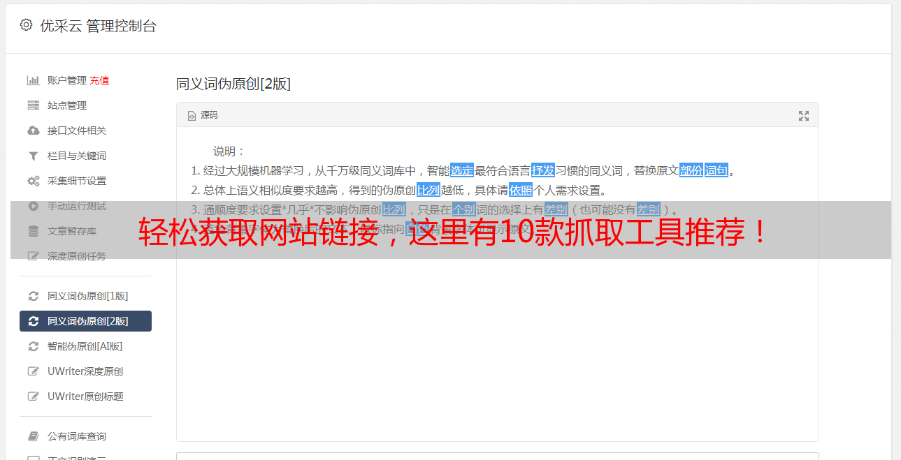 10.总结:网站链接抓取工具是一种非常实用的工具,可以帮助用户快速获取所需信息。在使用时需要注意合法合规,同时结合其他数据处理工具进行综合分析。优采云作为一家专业的数据采集企业,可以为用户提供全方位的数据解决方案。