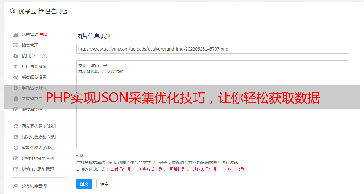 优采云 发布时间: 2023-04-04 12:11JSON(JavaScript Object Notation)是一种轻量级的数据交换格式。与XML类似,JSON也能够采集和传输数据,但相比之下,JSON更加简洁、易于阅读和编写。而PHP作为一种流行的服务器端脚本语言,也具备了处理JSON数据的能力。本文将为大家介绍如何利用PHP来进行JSON采集,并提供一些优化技巧。