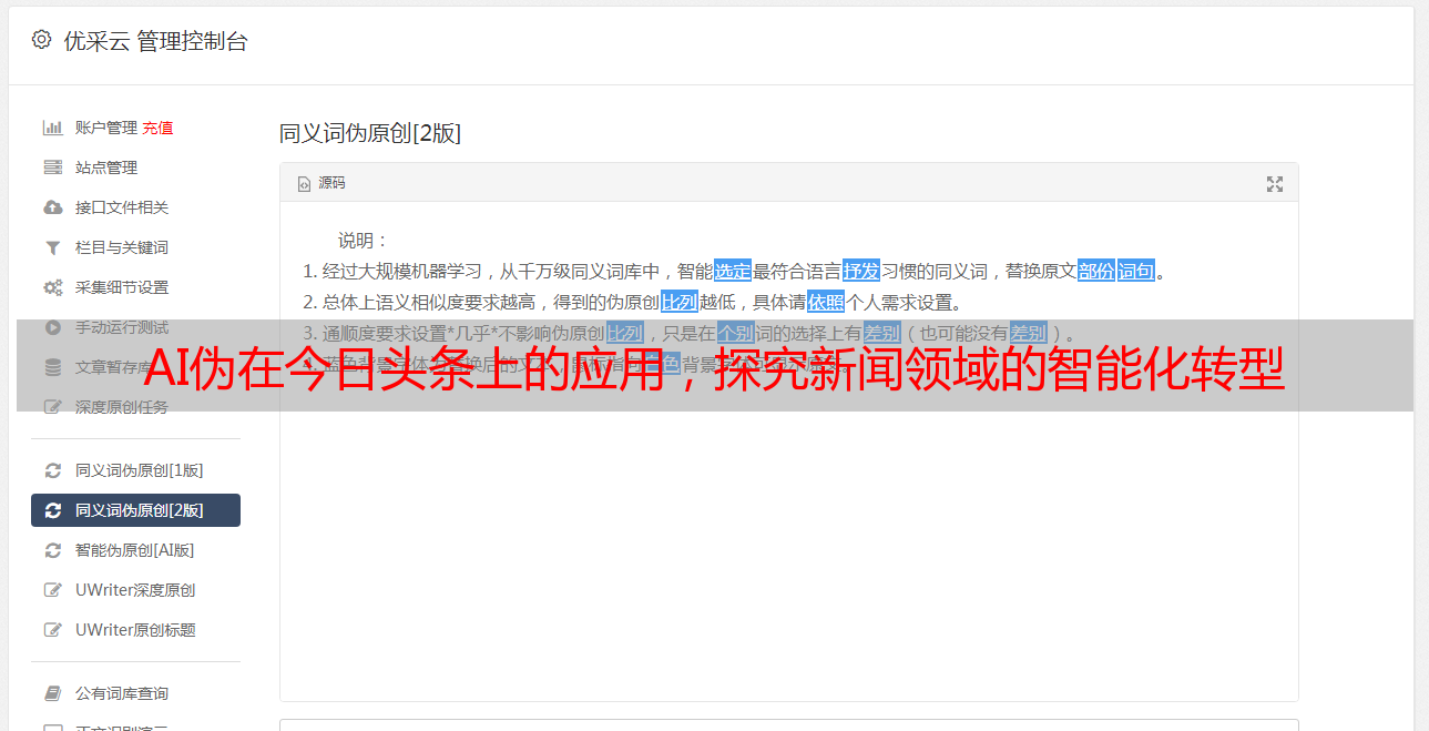 优采云 发布时间: 2023-04-04 12:12AI技术的广泛应用,给人们带来了很多便利,但是也出现了一些问题。今日头条AI伪就是其中之一。本文将从多个方面分析这一现象,帮助读者更好地了解AI技术在新闻领域的应用。