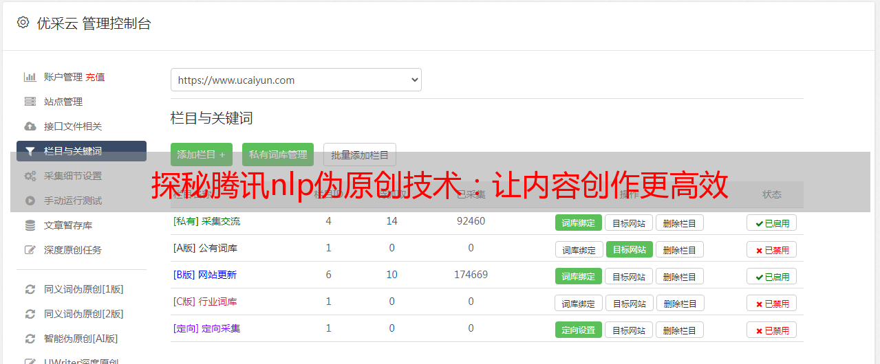 伪原创技术是一种非常有用的技术,可以帮助人们快速生成高质量的文章。腾讯nlp开发的伪原创技术可以应用于网络营销、自媒体创作、搜索引擎优化等领域。但是,伪原创技术存在一些问题,需要在使用时注意。如果您需要更加专业的伪原创服务,可以考虑使用优采云提供的伪原创服务。优采云是一家专业的内容营销平台,提供高质量的SEO优化服务,欢迎访问www.ucaiyun.com了解更多信息。