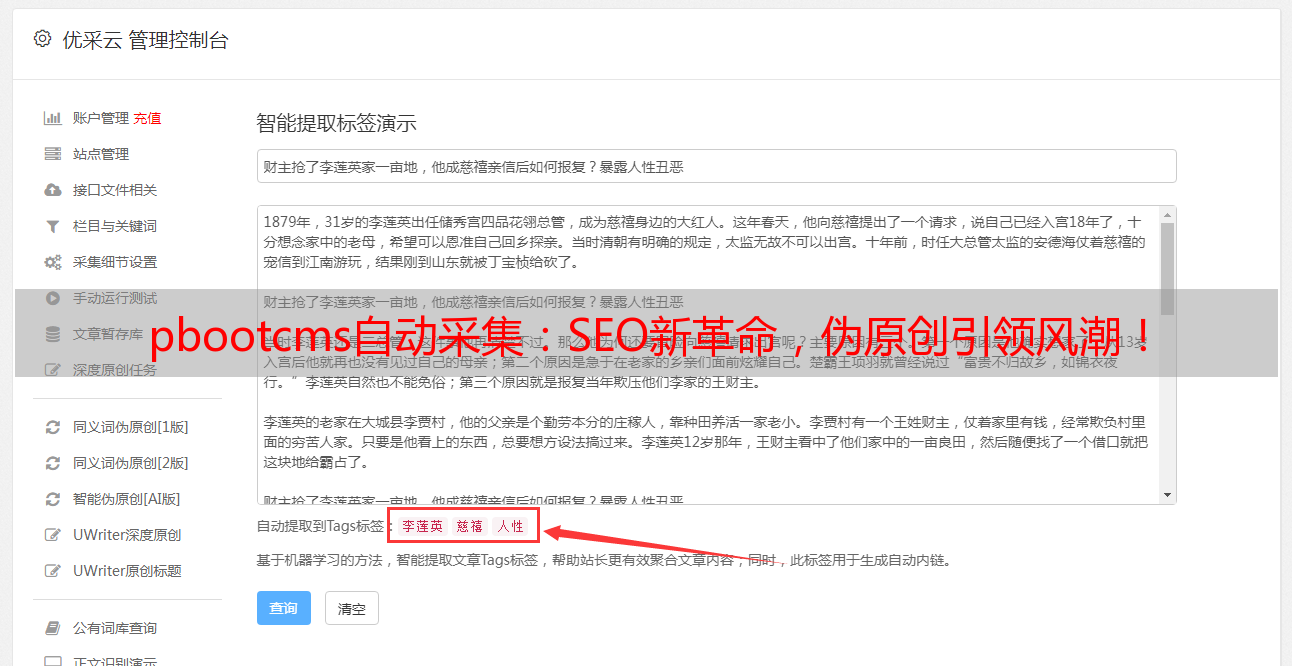 pbootcms自动采集:SEO新革命,伪原创引领风潮!