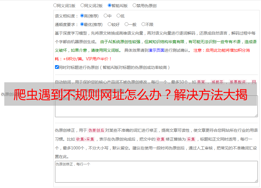 优采云 发布时间: 2023-04-04 19:15在网络爬虫的过程中,我们常常会遇到网页url不规则的情况,这给爬虫的编写带来了很大的难度。本文将从多个方面逐步分析讨论该问题,并提供解决方案,以帮助广大网站管理员和开发人员更好地应对这一问题。