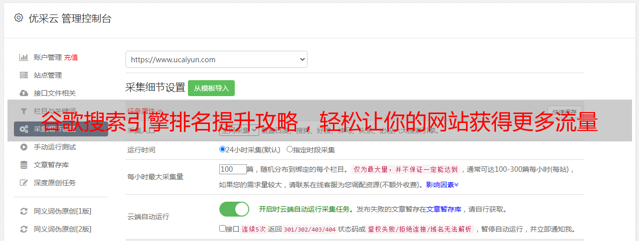 优采云 发布时间: 2023-04-05 06:10谷歌搜索引擎是全球最大的搜索引擎之一,它的搜索结果质量高、速度快、覆盖面广,深受用户喜爱。对于企业而言,一个在谷歌搜索结果中排名靠前的网站能够带来大量的流量和商机。那么,如何让自己的网站在谷歌搜索结果中排名靠前呢?本文将从以下8个方面进行详细分析讨论。