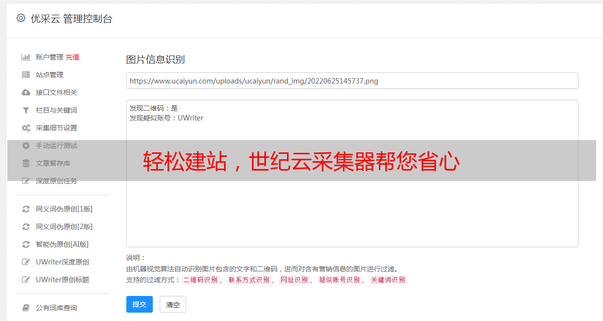 2.图片分享类网站:使用世纪云建站系统采集器可以轻松获取各大图片分享网站上的高清图片,并自动添加水印、版权声明等信息。