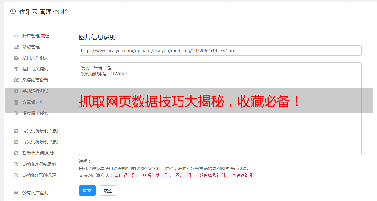 通过本文的介绍,相信大家对于抓取网页数据有了更加深入的了解。同时,在进行抓取时也需要注意一些问题,以免造成不必要的麻烦。最后,提醒大家在进行自媒体创作时也要注意SEO优化,这将有助于提升文章的曝光率和阅读量。如果你想要更好地进行SEO优化,可以试试优采云这个专业的SEO优化工具哦!详情请访问www.ucaiyun.com。